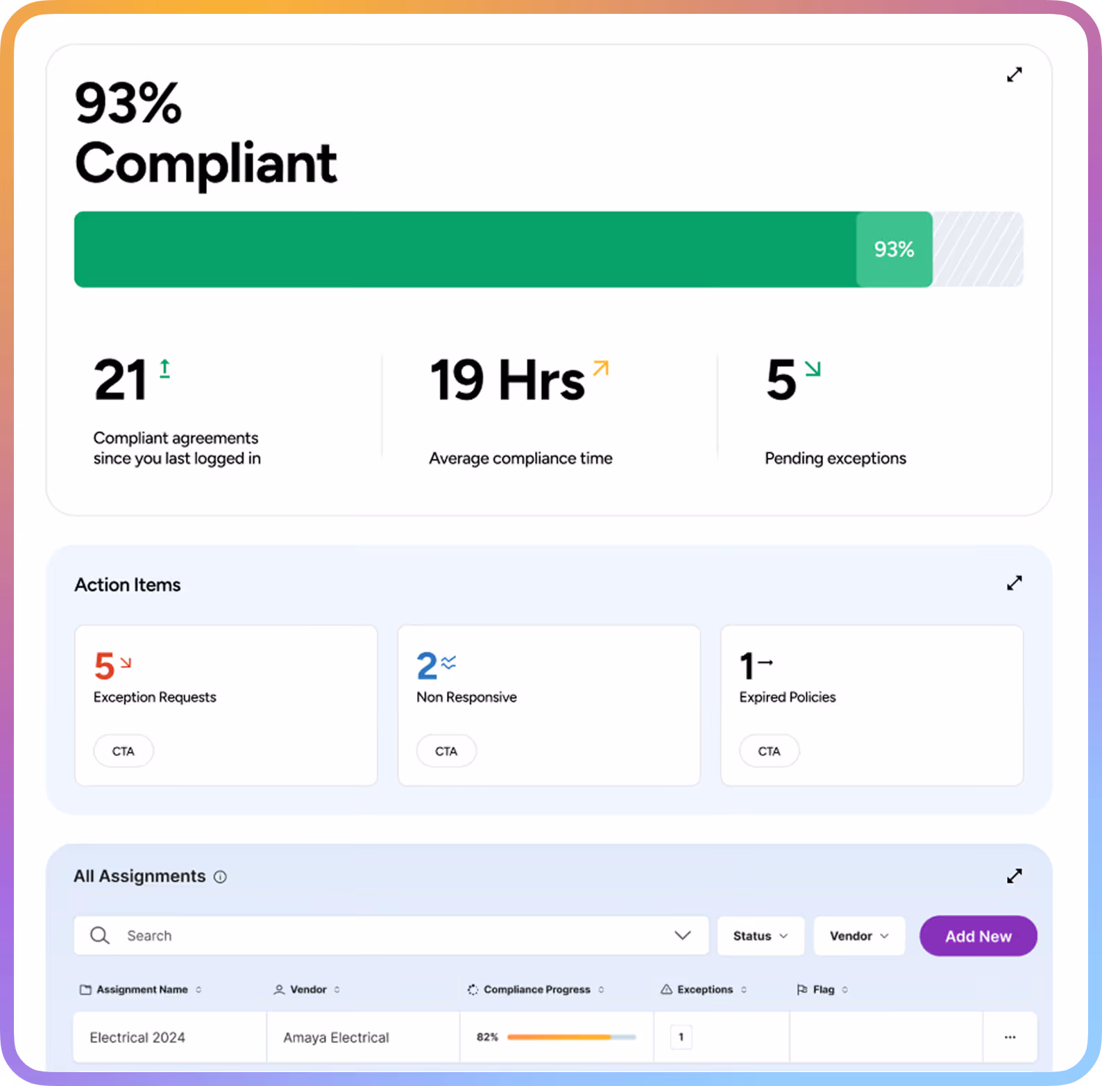 - Real-time compliance results across all vendors